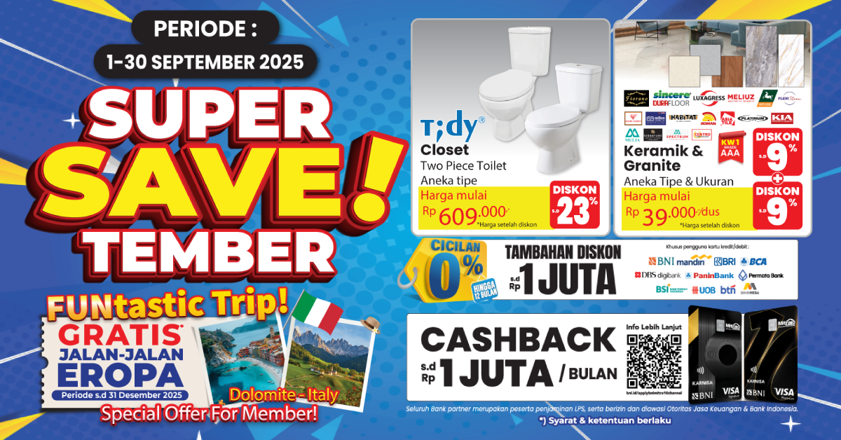Dengan harga yang lebih hemat, ketersediaan produk yang lengkap, serta kenyamanan berbelanja di satu tempat, promo Super Savetember menjadi kesempatan emas bagi masyarakat untuk melakukan renovasi rumah atau mengganti perlengkapan lama dengan produk baru yang lebih modern dan tahan lama.