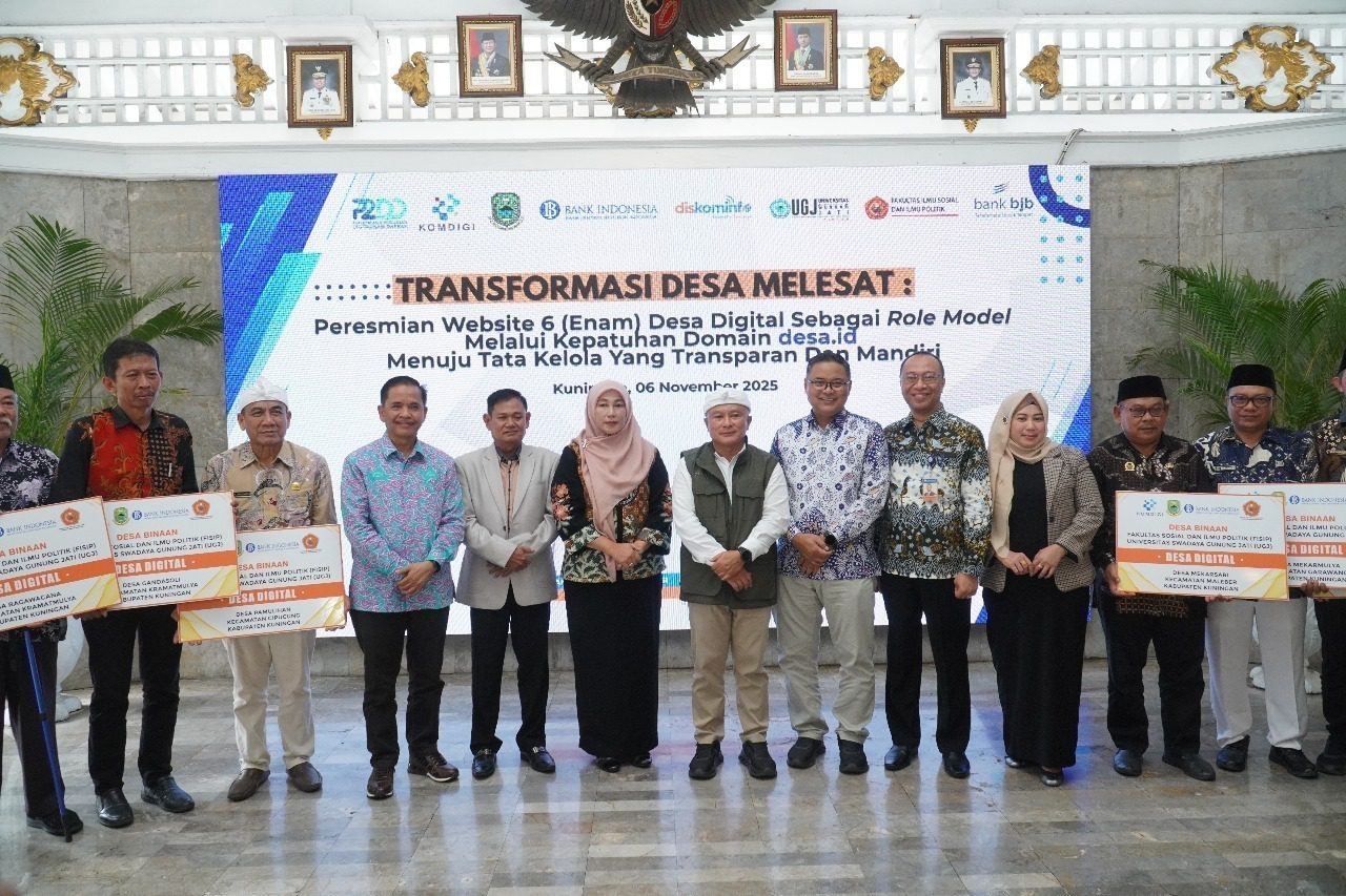 CIAYUMAJAKUNING.ID – Langkah nyata menuju tata kelola pemerintahan desa yang transparan, mandiri, dan berbasis teknologi kini semakin dekat di Kabupaten Kuningan. Fakultas Ilmu Sosial dan Ilmu Politik Universitas Swadaya Gunung Jati (FISIP UGJ) bersama Dinas Komunikasi dan Informatika (Diskominfo) Kabupaten Kuningan resmi meluncurkan program “Transformasi Desa Melesat”, yang ditandai dengan peresmian enam website desa digital sebagai role model implementasi domain resmi desa.id.